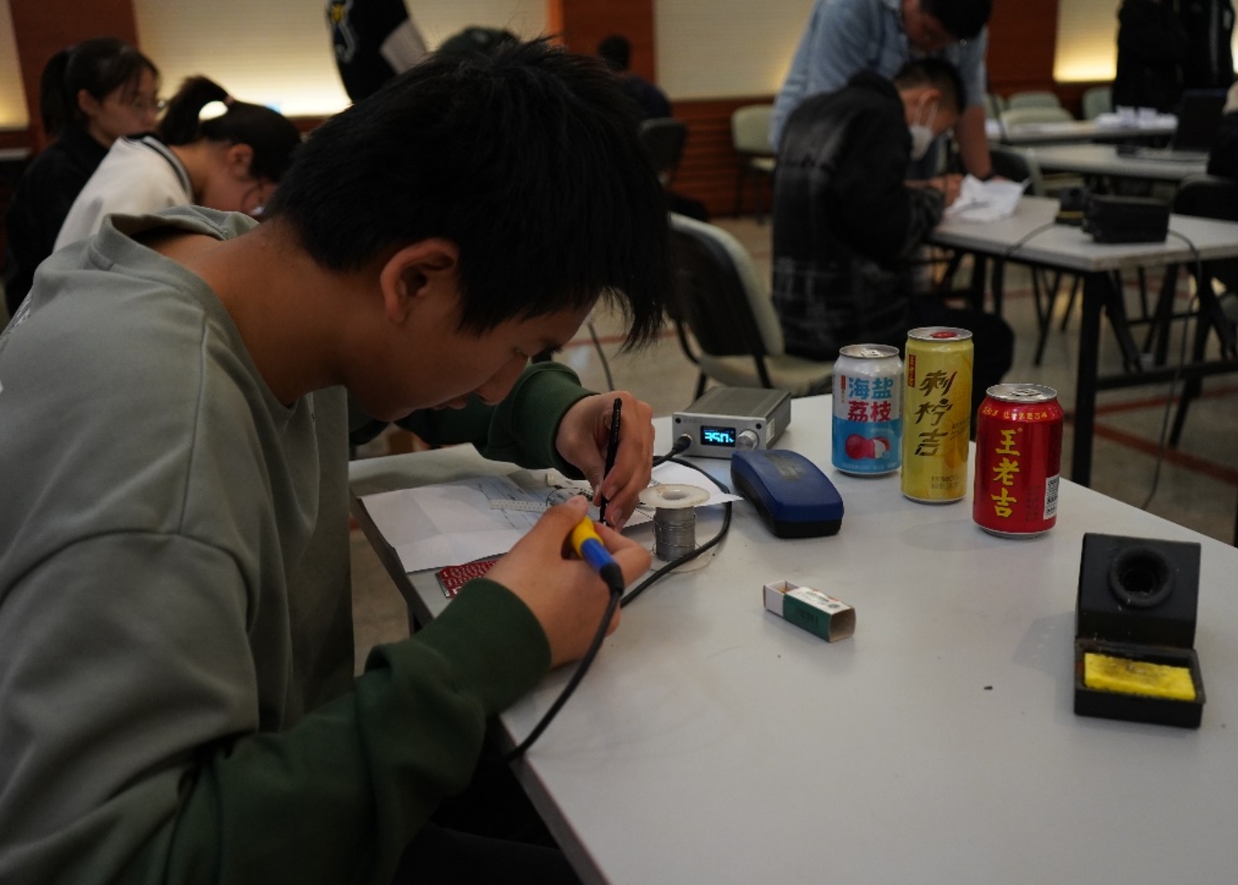 928直播足球为激发同学们科研创新的兴趣,提高当代大学生自我学习和创新能力,2023年3月26日,由928直播足球-928足球直播 创新电子实验室举办的第一届“王老吉杯”电子设计大赛在大学生活动中心二楼报告厅拉开了帷幕,王老吉品牌方领导、928直播足球 指导教师出席了本次比赛的开幕式。 本次比赛分为两个阶段。第一阶段为焊接操作比赛。各位参赛选手在印有王老吉的PCB板上进行焊接实践操作。第二阶段为车辆实战比赛。选手们勇敢面对各类突发事件,顶住内心的慌乱和恐惧,冷静应对,重新调试程序。最终各位参赛选手不负所望,取得了优异的成绩。 创新电子实验室成员为本次比赛的筹备做出了突出贡献,他们搬运物资、搭建赛道、布置赛场、安排赛程,确保了比赛的顺利进行。参赛选手们积极准备,虚心请教,专注于参赛车辆的软硬件调试,完成比赛的各项要求,实现各项关键技术。 每一份荣耀背后,都有不为人知的辛勤;每一场比赛背后,都有人为此付出汗水。未来,928直播足球 将继续与企业开展合作,为同学们搭建更宽广的创新创业平台,让同学在比赛中得到锻炼,收获成果。